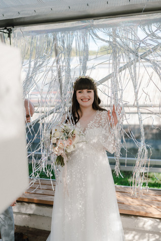 Gestartet hat ihr besonderer Tag mit einer freien Trauung inmitten der grünen Oase des Zehndermätteli Bern. Diese Location ist bekannt für ihre einzigartige Kombination aus Natur, Nachhaltigkeit und stilvoller Eventarchitektur.Die Trauung fand unter freiem Himmel statt – mit Blick auf die Aare-Schlaufe, umgeben von Apfelbäumen und dem charmanten Gewächshaus. Die spätsommerliche Sonne schenkte warmes Licht und eine romantische Stimmung, perfekt für emotionale Hochzeitsfotos.